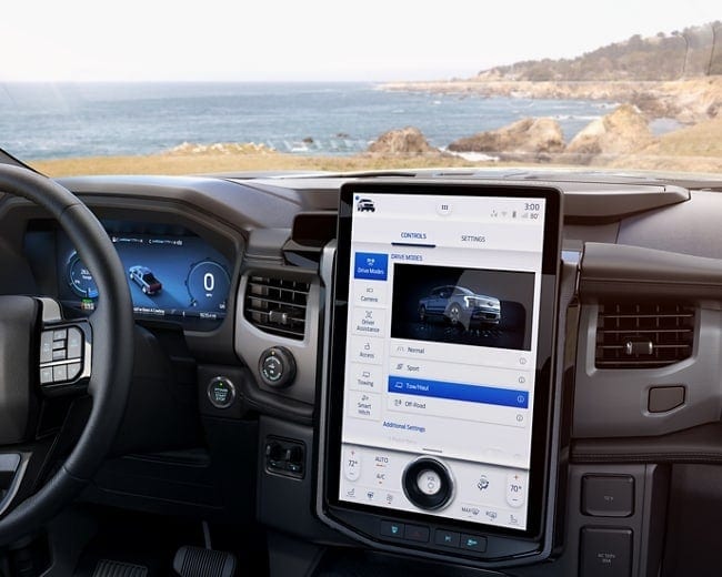 Inside the shell of the familiar F-150 body is a suite of high-tech features that makes the F-150 Lightning the stuff of science fiction thrillers. With the most advanced technology on the market, the F-150 Lightning includes all the connected features you would expect from a modern vehicle, like Apple CarPlay, Android Auto, and Wi-Fi hotspot on a massive table-sized 15.0-inch touchscreen. You'll also have access to the most advanced safety and semi-autonomous driver assistance technology to keep even the most novice drivers and their surrounding safe. Beyond driving entertainment and comfort, the F-150 Lightning can harness the power of its electric batteries and onboard outlets to transform into a whole-house generator. During an emergency, the F-150 Lightning can power a household for three days with a fully charged battery.