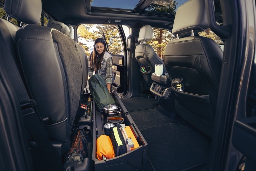 Be the talk of the tailgate. Pack along some conveniences camping. Plug-in a few power tools. With this much power your F-150® Lightning™ is up to the task.